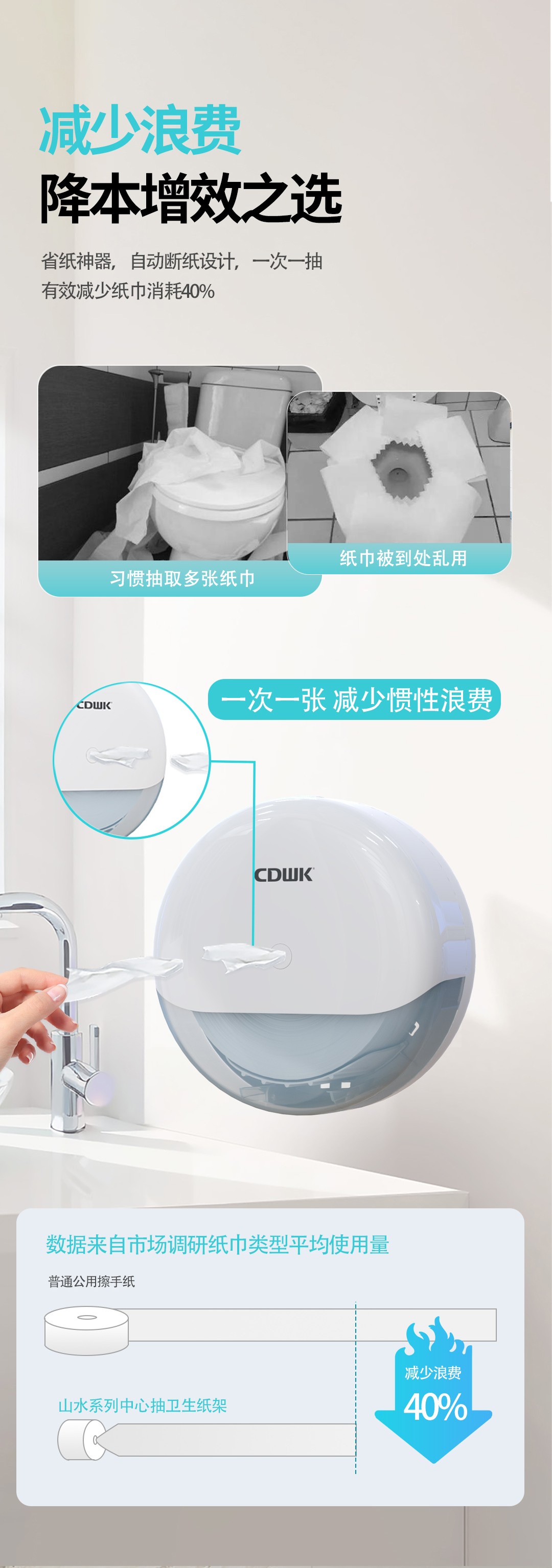 新品上市 | CDWK創(chuàng)點(diǎn)中心抽紙巾架,有效省紙的衛(wèi)生間潔凈新風(fēng)尚!