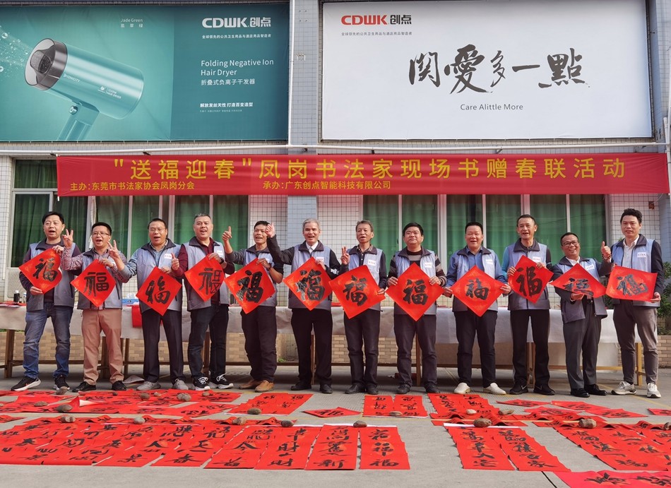 揮毫潑墨迎新春,喜送春聯(lián)暖人心!東莞書法家協(xié)會鳳崗分會走訪CDWK創(chuàng)點,“送福迎春”活動圓滿成功!